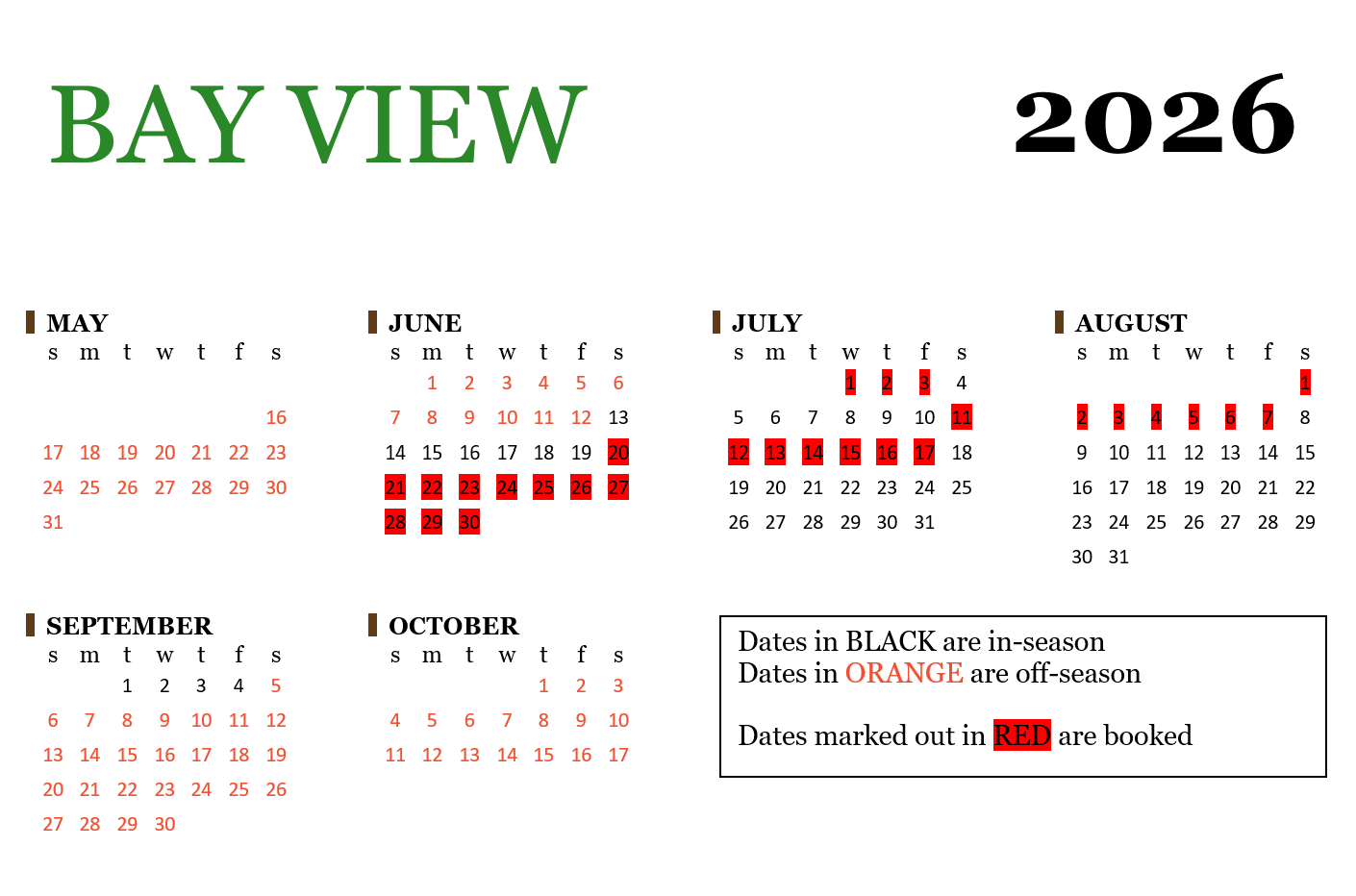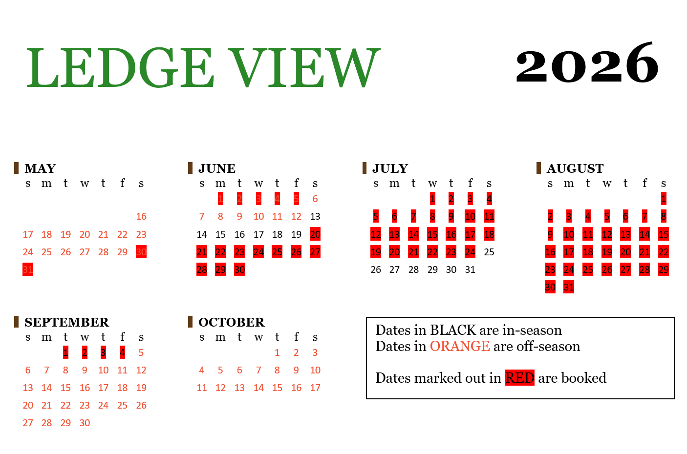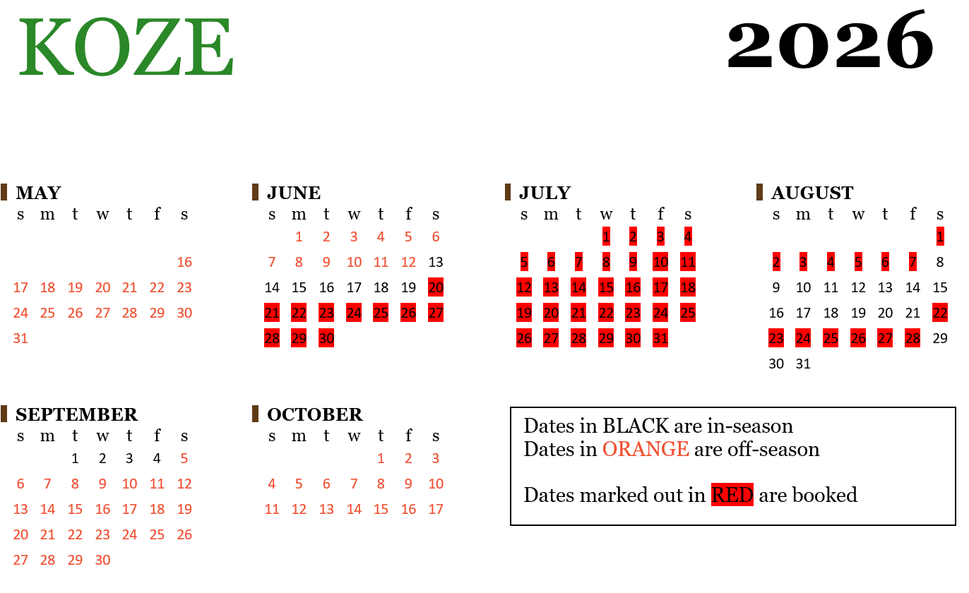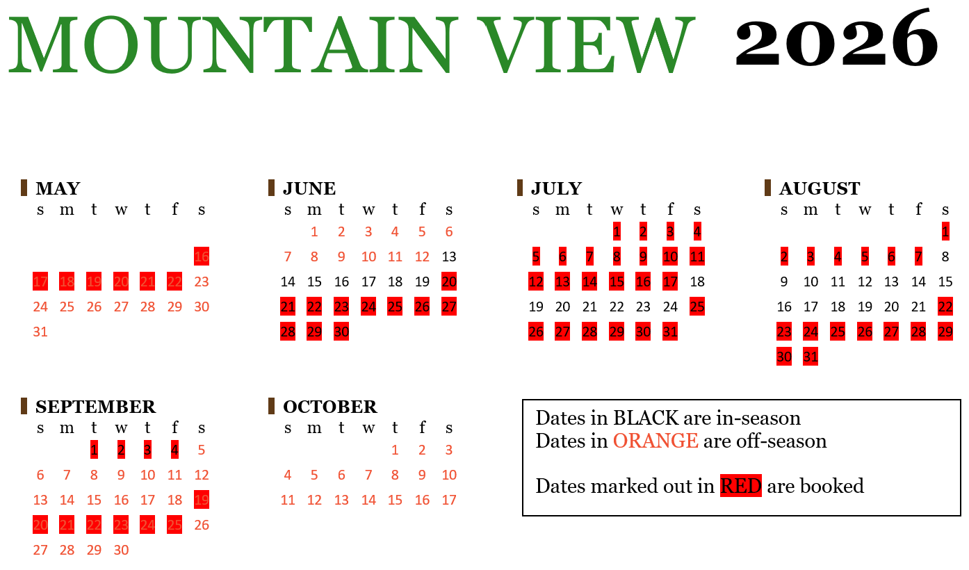 Off-season rates apply May 16 - June 12 & September 5 - October 17