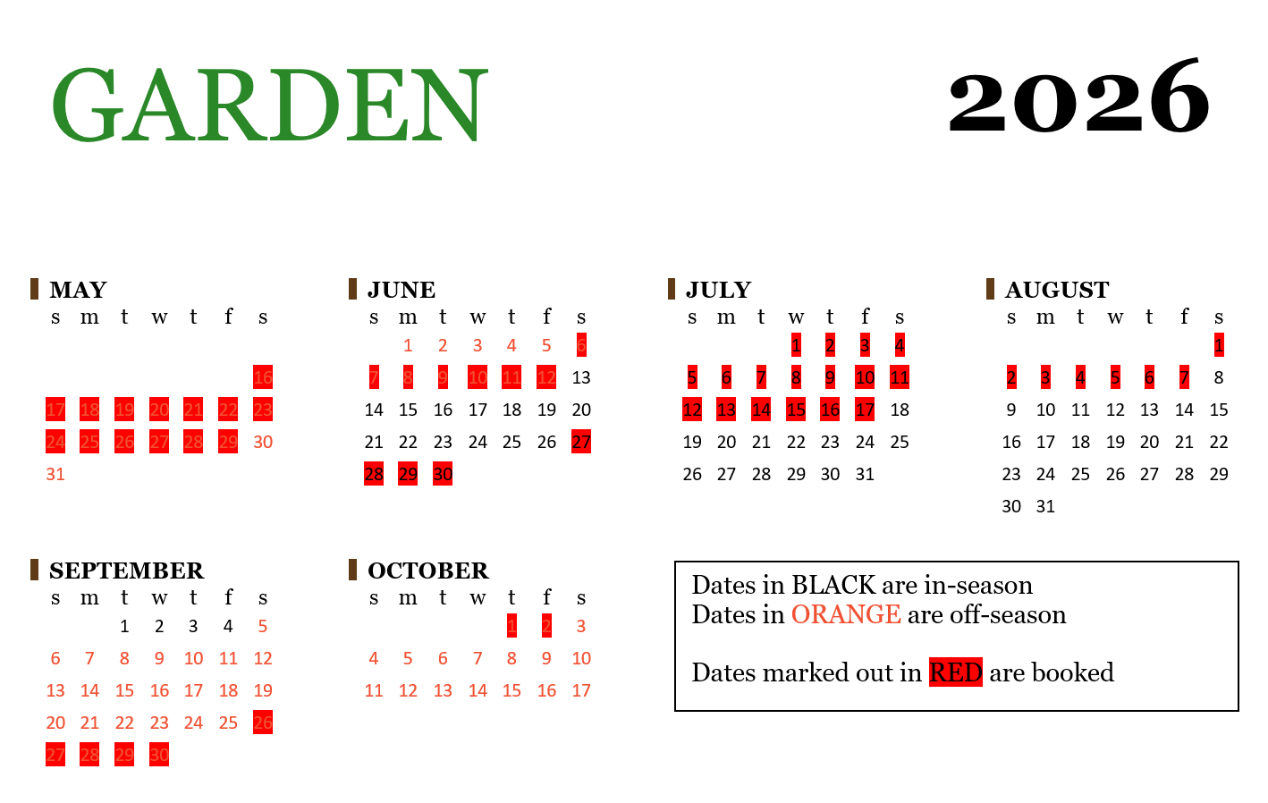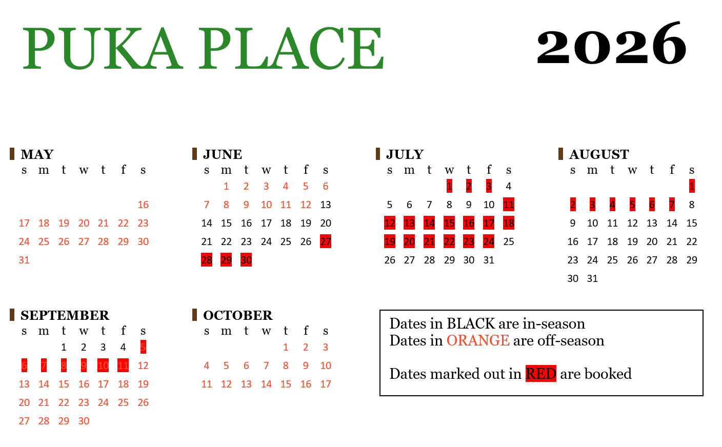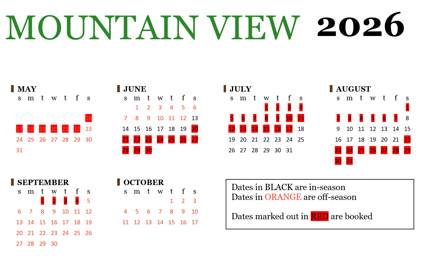 Off-season rates apply May 16 - June 12 & September 5 - October 17