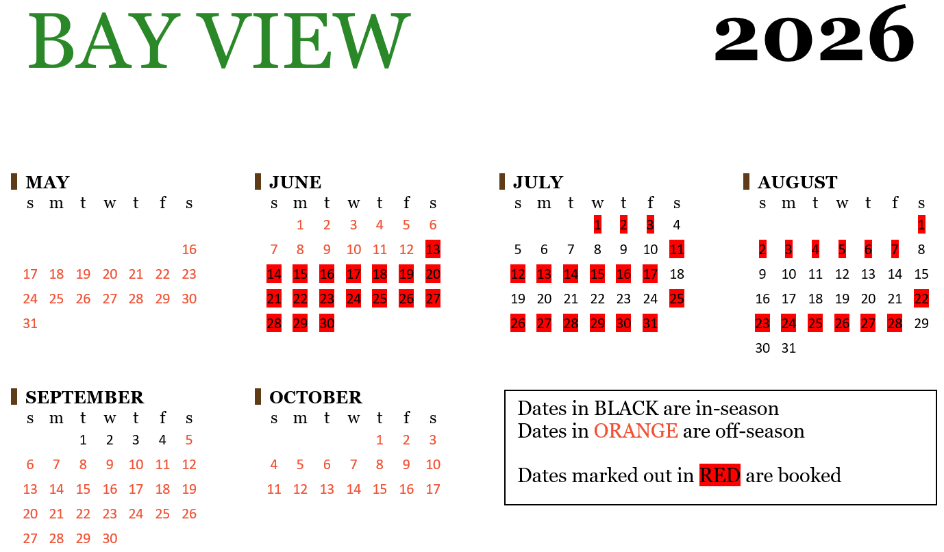 In-Season Day Rate: $310Off-Season Weekly Rate: $1,430